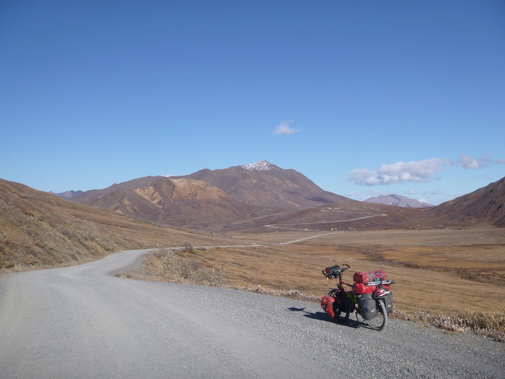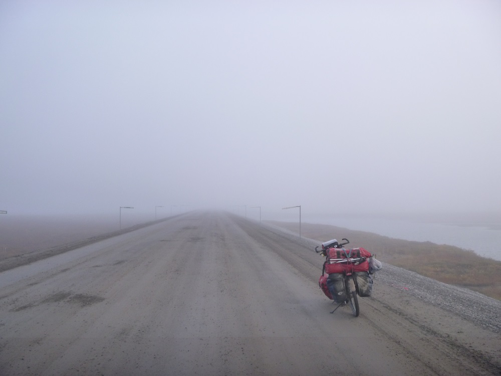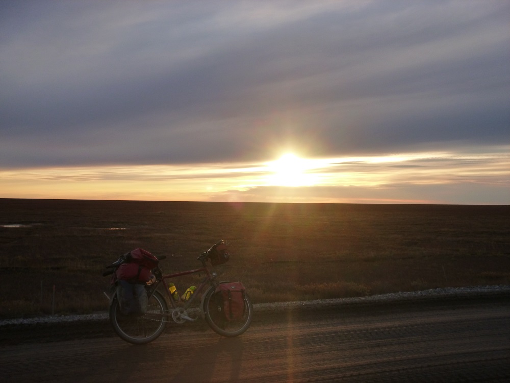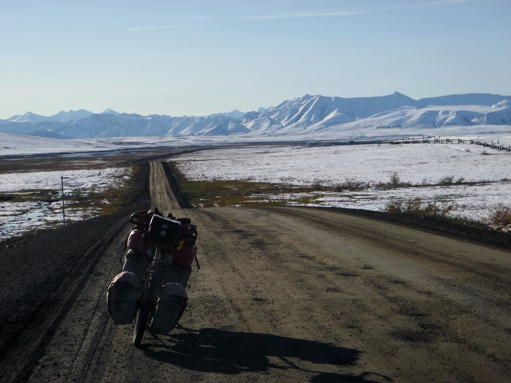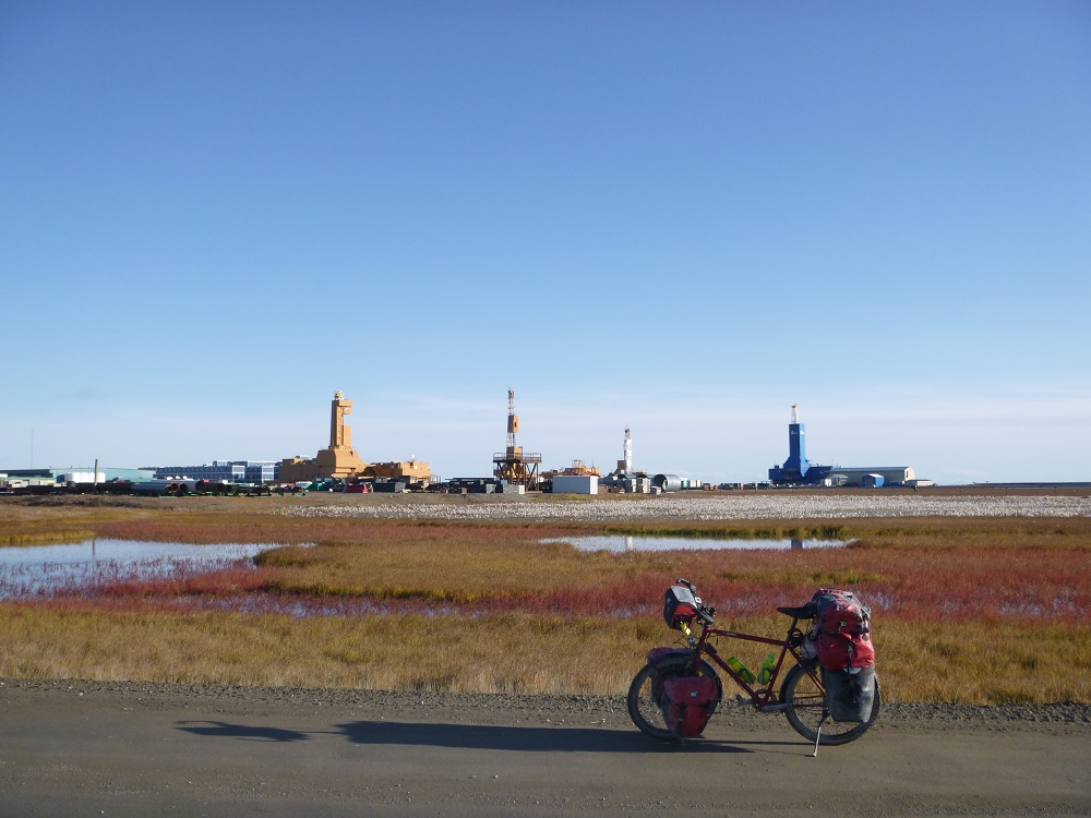 r stehenden Wohncontainer sitzen wir gemütlich bei Musik, Bier, Vodka und Bourbon zusammen. Etwas besonderes, da hier oben striktes Alkoholverbot herrscht und man wie zu Zeiten der Prohibition auf Schmuggler angewiesen ist, die einem eine Flasche mitbringen, die man dann verschworen im Kreise weniger eingeweihter genießt. Am nächsten Tag darf ich dann noch mit auf die Tour zum Arktischen Ozean. Die öffentliche Straße endet etwa 10 km vorher an einem Security Checkpoint. Danach ist Privatgelände der Ölgesellschaften und man kommt nur auf einer organisierten Tour zum Meer. Von hier geht es nicht mehr weiter nach Norden und im Wohnmobil geht es mit einer Gruppe Rumänen, die ich auf der Tour zum Arktischen Ozean kennengerlernt habe zurück nach Fairbanks. Die 10 Tage waren eine wirklich tolle Fahrt entlang des Dalton Highways, nicht zuletzt natürlich auch wegen des guten Wetters und der grandiosen Herbstfarben in oft schöner Landschaft und auch wegen der netten Leute, die ich unterwegs getroffen habe. Daher war es war ein sehr würdiger Abschluss der Hauptstrecke meiner Reise. Endstand in Deadhorse: 29.521 km, 1.699 h, 224.414 hm. Viele haben gefragt: „Was machst du, wenn du dann am Ziel bist?“ Nun, ich habe es einfach für mich genossen angekommen zu sein, hatte kein Bedürfnis jemanden anzurufen sondern wollte erstmal einfach da sein. Ich habe mich im Spike Raum mit Joghurt, Kaffee und Donuts eingedeckt, habe mich aufs Bett gelegt, den Fernseher angemacht und „Captain America“ geschaut. Nach einer Zeit habe ich dann die Sektflasche geöffnet, die ich extra von Fairbanks inklusive Glas bis hier herauf getragen hatte (gute Vorbereitung ist das halbe Leben) und habe gemütlich zwei Gläser Sekt getrunken. Das war’s.