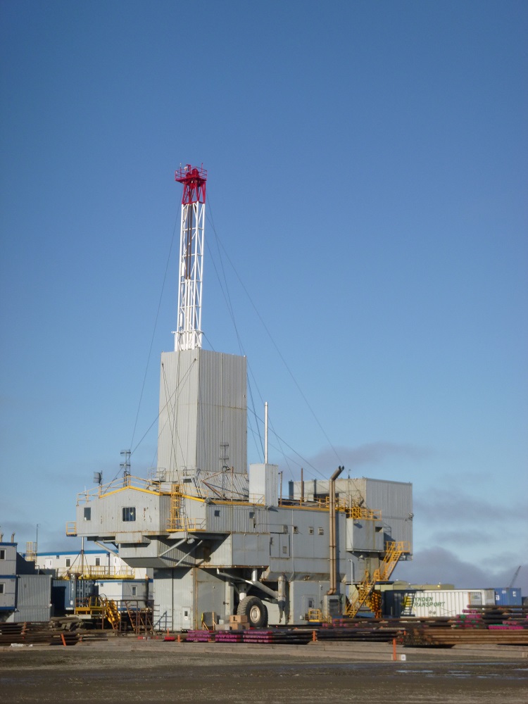 Drei Moschusochsen sind in der Tundra hinter meinem Zelt unterwegs und kommen just in dem Moment vorbei, als die Sonne unter die tief hängende Wolkendecke sinkt und die bunten Hügel und die Tiere in goldenes, warmes Licht taucht. Klasse Szenerie wie aus dem Werbeprospekt und wenn der schöne Tag schon so toll endet, dann müssen nachts natürlich auch wieder die Polarlichter tanzen! Also Wecker auf 2 Uhr nachts gestellt und siehe da- das weiß grünliche Licht vollführt über meinem Zelt wieder seine Show. Knackig kalt ist’s am letzten Tag und in dichter Nebelsuppe fahre ich auf den letzten 30 km meinem Ziel entgegen. Deadhorse. Ein Industriecamp der Ölgesellschaften. Das ist als Endziel ungefähr so romantisch wie es sich anhört und auf den ersten Blick mag man es hässlich finden. Ich finde es hat aber irgendwie einen gewissen Charme. Urlaub machen wo andere Arbeiten. Zur Feier des Tages gönne ich mir ein Hotel und bin dort der einzige Tourist. Ich komme mir vor wie ein Kind im Süßigkeitenladen. Es gibt eine Kantine mit Frühstück, Mittagessen, Abendessen inklusive sowie den „Spike Raum“. Eingerichtet wie ein Tankstellenladen mit Würstchenmaschine, Chips, Joghurt und Milchprodukten, Eismaschine, Gerichten zum warm machen, Obst, Snacks aller Art, Backwaren und was sonst noch allem, was ein Radlerherz höher schlagen lässt. Das ganze 24 h verfügbar und im Preis inklusive. Man kann sich eindecken mit allem was man will. Der Zeitvertreib findet dann in einem der Spielzimmer statt, wo man in Sesseln lümmelnd Playstation spielen kann oder im Hobby Raum wo man sich mit Billard und Tischtennis vergnügt. Alternativ steht noch der Trainingsraum oder die Saune zur Verfügung, so dass es den Arbeitern hier oben an nichts fehlt, während sie auf ihrer 2-4 Wochen Schicht weit weg von ihren Familien und Eigenheimen am Ende der Welt sehr gutes Geld verdienen. Für ein paar Jahre scheint mir das durchaus lukrativ. Zur ungefähren Einordung: Ein einfacher Straßenarbeiter, ohne Verantwortung, Gewerkschaftsmitglied, bekommt (nach Selbstauskunft) inklusive aller Zulagen für Überstunden und ggf. Wochenendarbeit 10 000 Dollar monatlich sowie kostenfreie Mahlzeiten, Snacks und Unterkunft. Dafür arbeitet er bis zu 12 h pro Tag für 14 Tage durchgehend und hat danach 14 Tage frei. Für die zweite Nacht habe ich eine Einladung in einem anderen Camp, wo ich mich am ersten Tag mit der Küchencrew angefreundet hatte und hier Essen und einen Wohncontainer kostenfrei bekomme. Am Abend hat die 8 köpfige Crew eine kleine Party. In einem lee