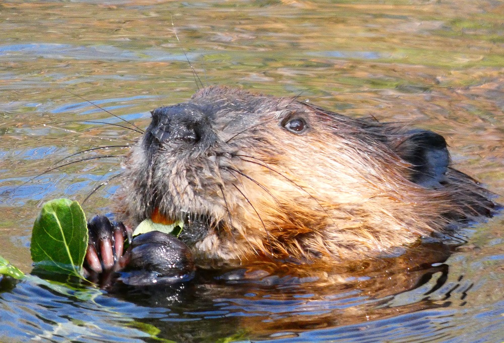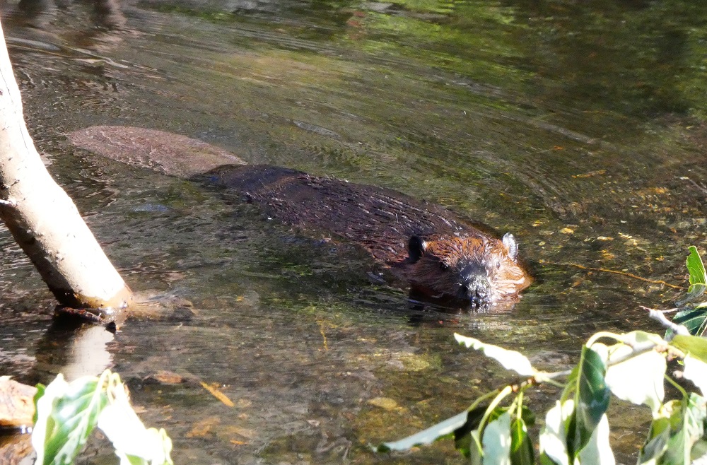 knacken eines fallenden Baumes. Ich blicke auf und sehe, wie sich der Baum immer schneller neigt und dann laut krachend mit großem spritzen nur fünf Meter von mir entfernt mitten in den Teich stürzt. „Wie geil ist das denn? Das glaubt mir kein Mensch, wenn ich das erzähle“, denke ich und stehe noch immer lachend und kopfschüttelnd da, als die Biber wieder auftauchen. Die Biberdame macht sich sofort daran frische, grüne Zweige abzunagen, quer über den Teich und dann hinab unter Wasser und hinein in die Biberburg zu ziehen, während das Bibermännchen genüsslich den eigenen Hunger stillt und sich die saftigsten Blätter mit lautem Nagegeräusch sofort vor Ort einverleibt. Ich liebe diese Reise…