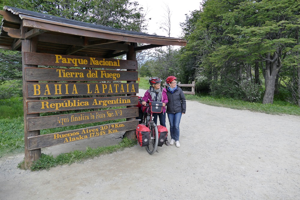 Der Nationalpark Tierra del Fuego liegt ca. 20 km südwestlich von Ushuaia und bietet ein paar Wanderwege, idyllische Campingplätze und das berühmte Schild mit der Kilometerangabe bis Alaska. Bis ich zu meinem eigenen Foto kam musste mein Fahrrad aber erstmal für ein paar Touristen als Fotomodell herhalten. Insgesamt ist es am Ende der Welt aber recht hübsch.