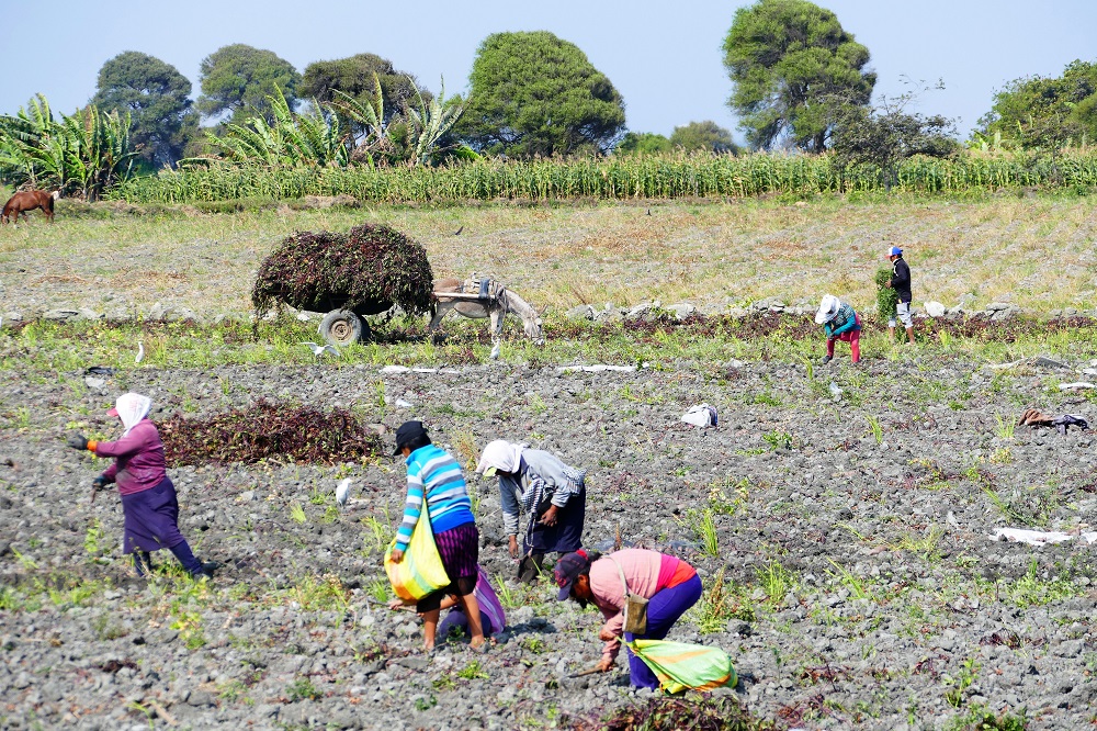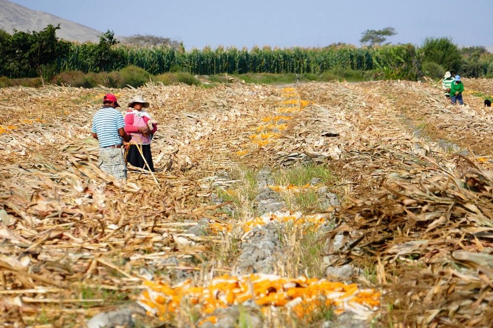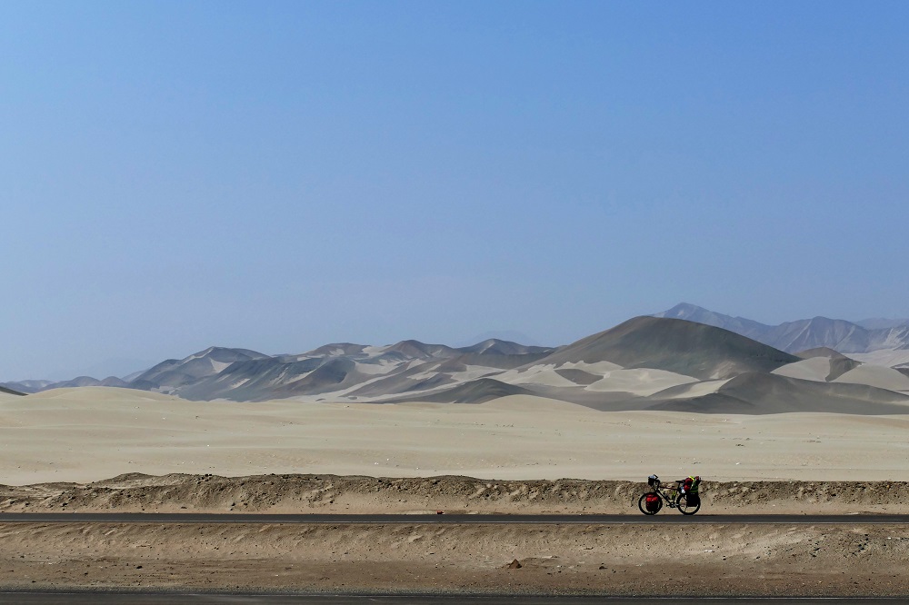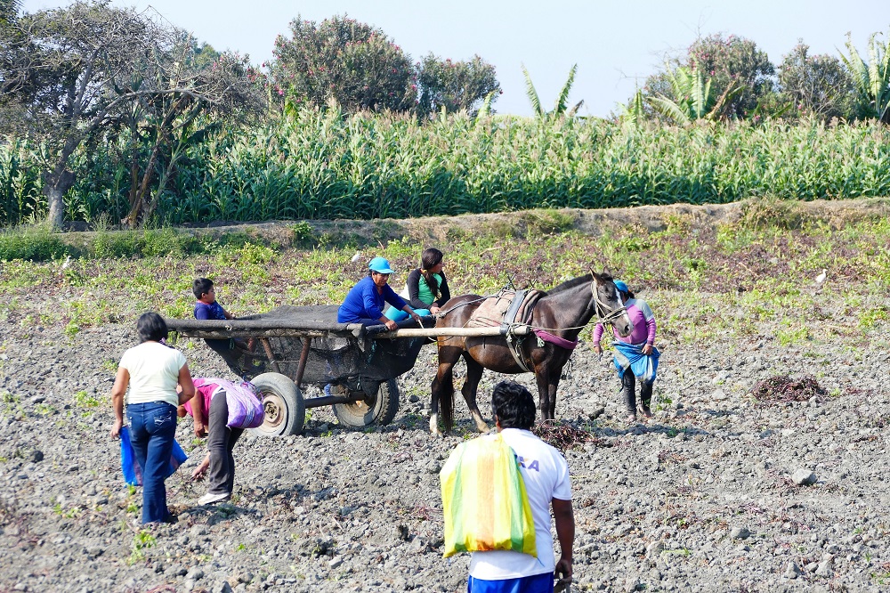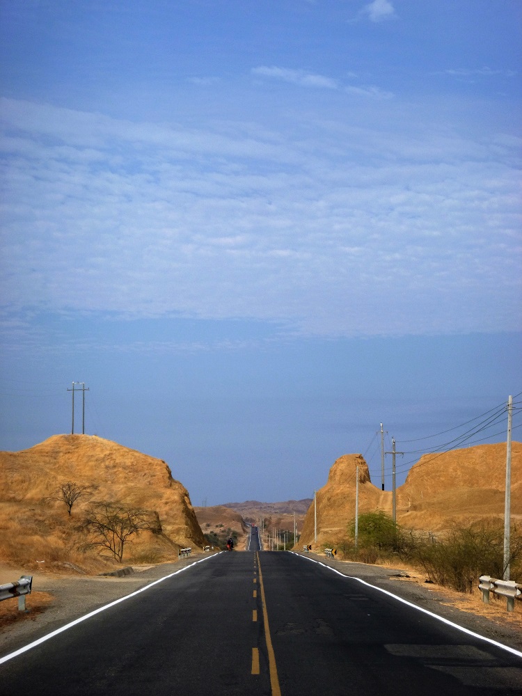 Nachdem Huanchaco also noch nicht der ideale Urlaubsort war, ging es weiter die Küste entlang in Richtung Mancora. Einer der beliebtesten Badestrände Perus. Endlich ist es endgültig flach und ich schaffe seit langem mal wieder regelmäßig an die 150 km am Tag. Es geht nun häufig zwischen den Wüstenabschnitten durch intensiv bewässerte und landwirtschaftlich genutzte Gebiete mit sattem Grün. Von ein paar Bananen über Zuckerrohr, Artischocken, Reis, Mais bis zu Erdbeeren wird hier alles angebaut. Jahreszeiten spielen dabei keine Rolle. Es gibt sie nicht und so erntet der eine Nachbar gerade seinen Mais, während der andere Nachbar erst beim Aussäen ist und beim Dritten die Feldfrüchte in voller Blüte stehen. Maschinen sieht man auf den Feldern dabei selten. Landwirtschaft ist hier mühsame Handarbeit und alle packen mit an.