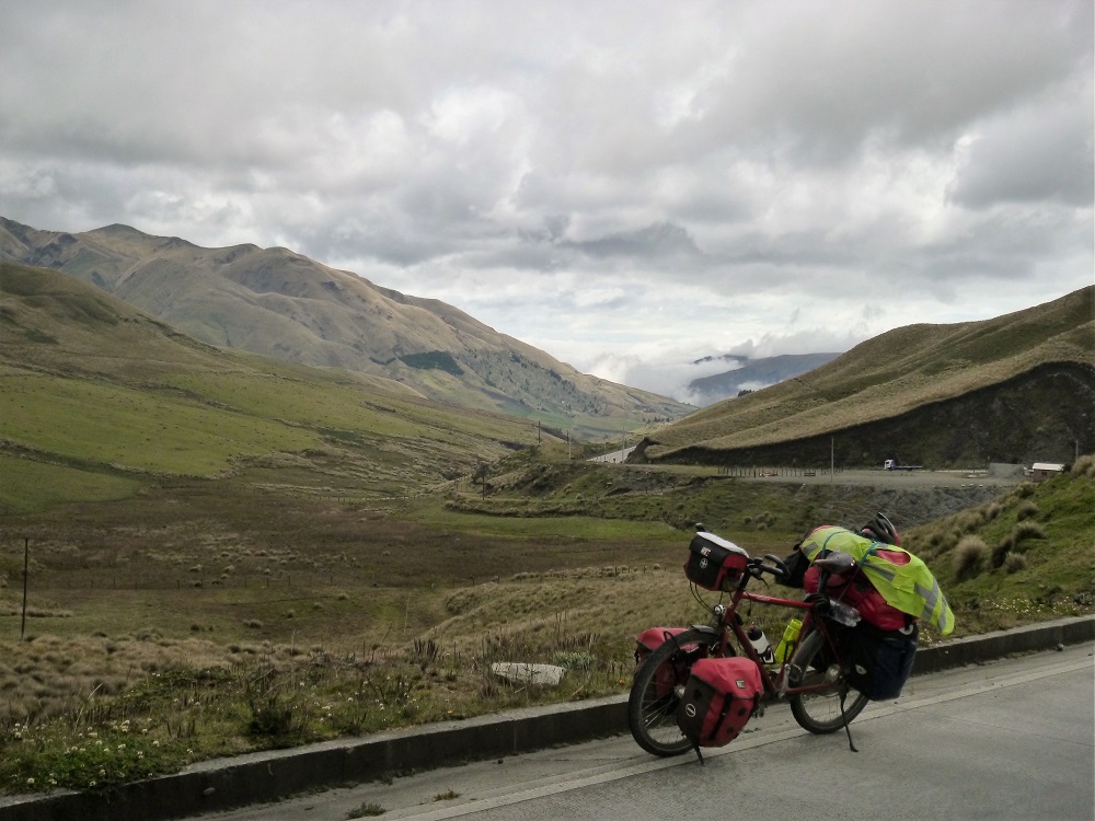 Immer wieder ziehen Wolken vorbei, liegen wie ein See unter mir oder ich fahre in Nebelschwaden hinein, die genauso schnell wieder verschwinden wie sie gekommen sind. Eine hohe Wolkendecke sorgt dabei für eine Dauerbeschattung und als ich die Westkordiliere der Anden auf 3900 m endlich überwunden habe, setzt kalter Regen ein, der mich von Riobamba bis nach Quito nun immer wieder begleitet. Eigentlich war ich hier hoch, zurück in die Anden gefahren, um die markanten und bekannten Vulkane Chimborazo (6268 m) und Cotopaxi (5897 m) entlang der Strecke zu bestaunen. Leider hängt die ganze Umgebung ständig in Wolken, aus denen sich mehrfach pro Tag heftiger, kalter Regen ergießt und nur am Abend habe ich das Glück für ein paar Minuten einen halbwegs klaren Blick auf die Berge zu erhaschen, bevor sie wieder in den Wolken verschwinden. Das Andenhochland Ecuadors soll schön sein, hat man mir gesagt. Ich will es ihnen glauben. Wellig bis bergig ist es auf jeden Fall und man fährt viel Auf und Ab.