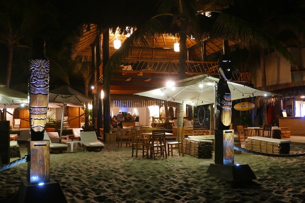 So sitzte ich also, die Füße nicht im Sand, weil ich lieber in einem der Loungesessel auf dem Holzverdeck Pla
