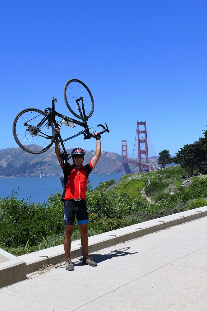 Am Abend waren wir dann zum Gegenbesuch bei den Freunden und weinselig ging der Abend bei gutem Essen weiter. In Sachen Gastfreundschaft stehen die Amerikaner ihren Nachbarn im Süden definitiv in nichts nach. Ich war nun im Central Valley Kaliforniens. Auf Nebenstraßen ging es erst weiter durch Weinanbaugebiete, später dann wieder Erdbeeren, Kohl, Lauchzwiebeln und Salate und überall schufteten die Mexikaner im Akkord. Sobald eine Kiste voll ist, geht es im Laufschritt zur Abgabe, abstempeln und dann im Laufschritt wieder zurück. 8-10 Stunden arbeiten sie hier fleißig und in so einem Tempo, dass ich mir nicht vorstellen kann, dass eine Maschine das schneller könnte (abgesehen davon, dass manche Arbeit nicht maschinell verrichtet werden kann). Sehr beeindruckend dabei zuzuschauen. Dabei müssten die Arbeiter gar nicht im Akkord arbeiten. Sie machen das freiwillig, da sie so auf einen Stundenlohn von 15-17 Dollar kommen. Würden sie für ein Festgehalt arbeiten, bekämen sie gerade mal den Mindestlohn von 10 Dollar und dürften nicht länger als 8 Stunden pro Tag arbeiten. Natürlich ist dieses System, das auf die Selbstausbeutung der Mexikaner baut durchaus kritisch zu betrachten, aber der kurzfristig hohe Gewinn verhindert das Aufkeimen des Wunsches nach nachhaltigeren, auf langfristiges Wirtschaften hin ausgelegten Arbeitsbedingungen und funktioniert, solange genügend fitte und junge Arbeitskräfte nachkommen. Kräftig hügelig ging es die raue Küste entlang, noch einen Platten und damit der Abschied von meinem Reifen nach 23596 km und der Wechsel auf den neuen Pneu, den ich schon seit Costa Rica mit im Gepäck trage, bis San Francisco. Die nur 800 000 Einwohner zählende Stadt, zwischen anstrengenden Hügeln und dem Meer auf der einen Seite und der Bucht von San Francisco auf der anderen Seite liegend, gehört wohl zu den schönsten Städten der USA. Die Golden Gate Bridge als Wahrzeichen mit weltweitem Bekanntheitsgrad, die tolle Lage und die vielen Parks sowie ein großer Business District sowie die Nähe zum Silicon Valley machen die kleine Stadt zu einer Weltstadt mit hohem Lebenswert, aber auch extrem hohen Mieten. Untergekommen bin ich bei einem IT-ler, der von zu Hause aus flexibel arbeitet, sich einen Joint nach dem anderen dreht und mich auf eine Tour durch San Francisco vom Rennrad aus mitgenommen hat. Dafür bekam ich sein super leichtes Carbon Rad, auf dem ich die Hügel gefühlt wie mit Elektroantrieb hochflog. Die Golden Gate Bridge habe ich dabei aus allen Blickwinkeln gesehen und fotografiert und natürlich auch sonst alles kennengelernt, was San Francisco zu bieten hat. Besonders gut hat mir auch der Golden Gate Park gefallen. Im Gegensatz zum langweiligen und ollen Central Park in New York, hat man im Golden Gate Park wirklich das Gefühl draußen im Grünen zu sein. Die Geräusche der Stadt sind abgeschnitten, die Häuser sind nicht zu sehen und Familien kommen hier zum Picknicken hin oder schulen machen Grillausflüge und die Schüler spielen Frisbee oder Football. Dazu gibt es ausgezeichnete Radwege. Den Abend haben wir dann bei einem Bier in einem anderen Park im Viertel meines Gastgebers mit Blick über die Stadt ausklingen lassen.