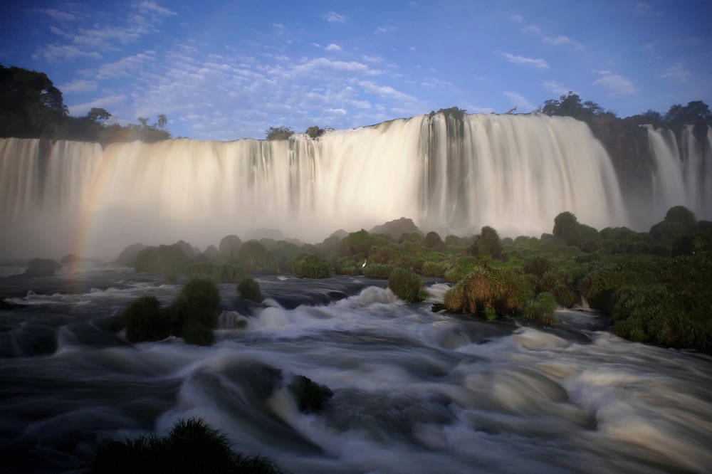Endlich angekommen. Permanentes Dröhnen der donnernden Wassermassen die hier herunterrauschen. Das Ganze auf einer Länge von 2,8 km. Ein beeindruckendes Naturschauspiel, das seines gleichen sucht. Stege, die unmittelbar über und mitten zwischen die Wasserfälle führen. Man wird auf jeden Fall nass (und die Kamera auch :-/ ) und erlebt die Fälle hautnah.