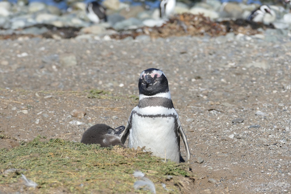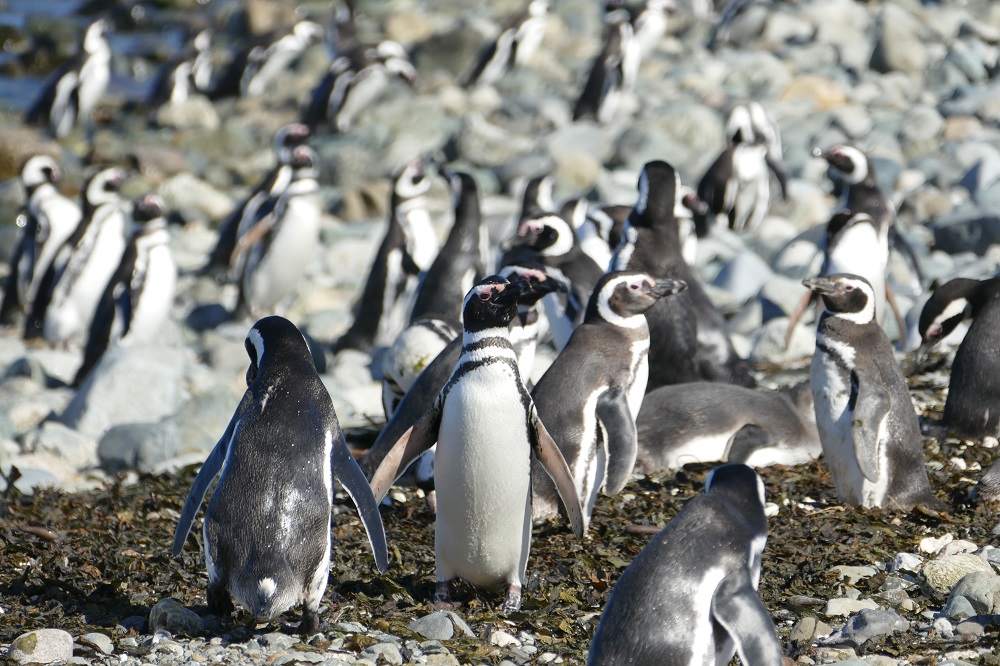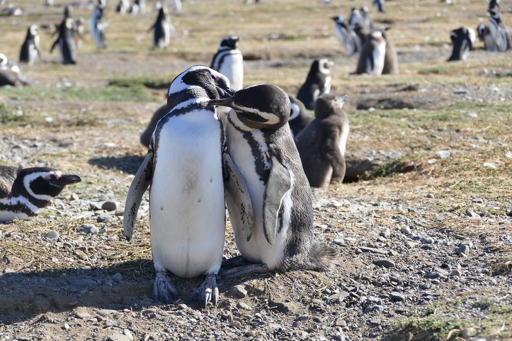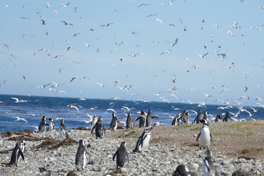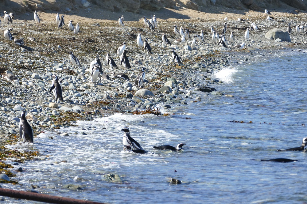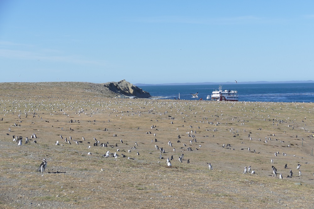 Die ersten Strahlen der frühen Morgensonne wärmen die Haut. Sanft rollen meine schwarzen Reifen über die glatten, hellen Betonplatten. Der frisch gezogene, gelbe Seitenstreifen leuchtet mir entgegen. Endlich mal ohne Wind, zeigt mein Tacho eine gute Geschwindigkeit. Es fühlt sich gut an. Ich denke nochmal an die vergangenen drei Tage zurück, die ich in der quirlig, lebendigen Stadt mit südländischem Flair verbracht habe. Punta Arenas hat mir gut gefallen. Es war herrlich warm. Kein Vergleich mehr zu den eisigen Winden Feuerlands. Die Strapazen der letzten Woche – komplett verblasst. Auch mit den Pinguinen hat es nun endlich geklappt. Der Ausflug mit dem Touristenboot zur Isla Magdalena, ca. 2,5h von Punta P1060063Arenas, hat sich auf jeden Fall gelohnt. Schon weit vor der Insel konnte man die ersten Magellan Pinguine beim Jagen beobachten wie sie agil durch das Wasser schossen und spontan die Richtung änderten. Ganz anders, als das tollpatschige Bild, dass sie an Land abgeben. Auch Delphine begleiteten das Boot ein Stück und auf der Rückfahrt kreuzten noch Wale unseren Weg, die schon von weitem anhand ihrer regelmäßig ausgestoßenen Atemfontänen zu erkennen waren. Auf der Insel selber brüten ca. 50 000 Paare von Magellan Pinguinen und ziehen dort ihre Jungen groß. Auf einem etwa 800 m langen Weg schlendert man dann hoch zum Leuchtturm und wieder zurück. Die Pinguine schienen sich an das tägliche, einstündige Schauspiel von Touristen, die auf die Insel strömen gewöhnt zu haben und hielten den vorgegebenen Sicherheitsabstand von einem Meter nicht immer ein. Den Pinguinen so nahe zu kommen und trotz der touristischen Kommerzialisierung der Insel das Gefühl zu haben der Natur direkt und unmittelbar zuschauen zu können, war ein einmaliges Erlebnis.