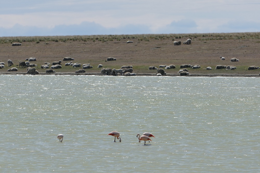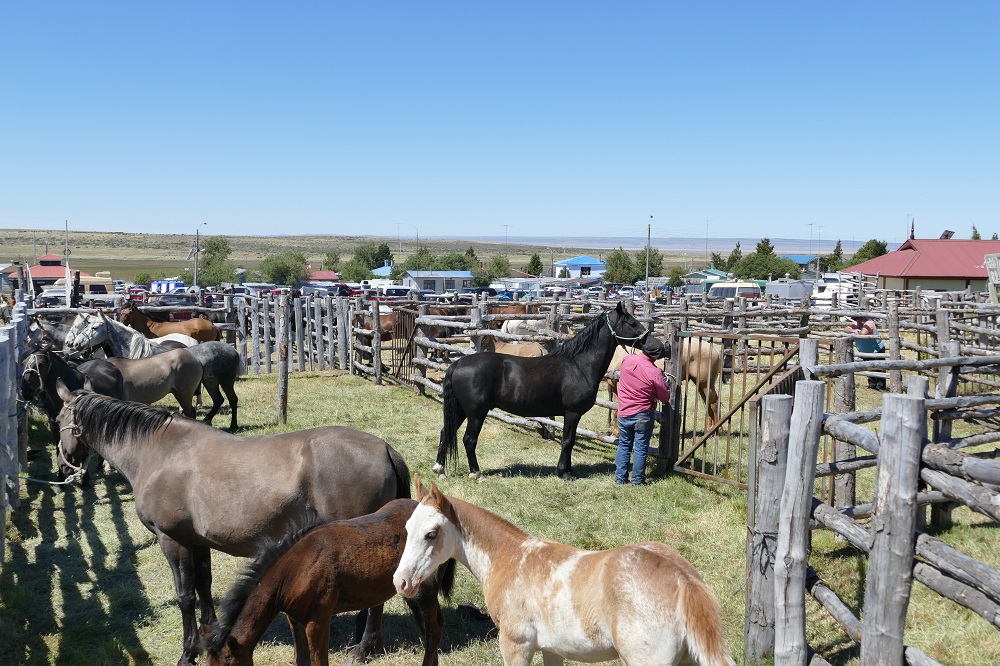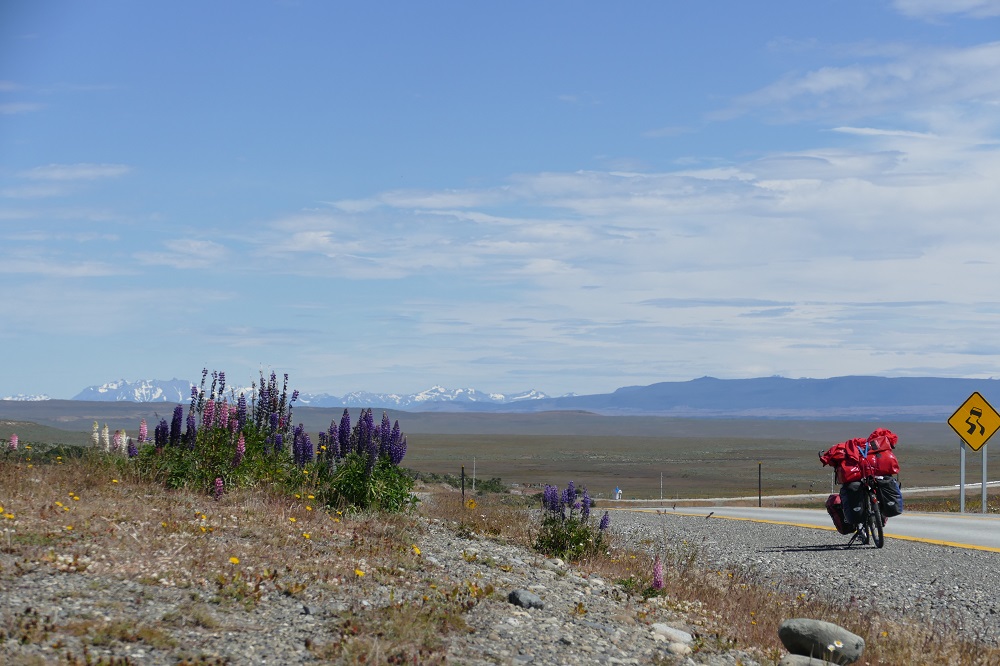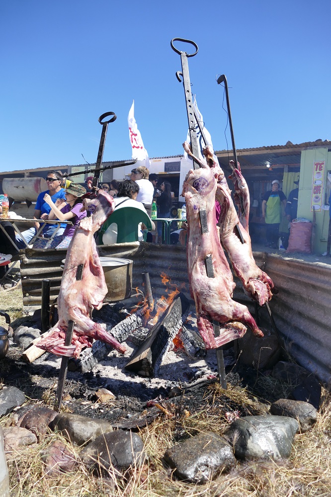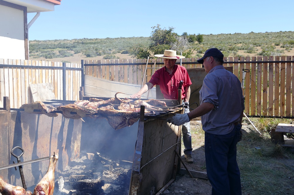 Da war er wieder. Erst kaum mehr als ein sanftes streicheln auf der Haut, nach nur 30km, aber schnell stärker werdend, blies mir nun wieder ein leichter Wind entgegen. Nichts allerdings im Vergleich mit den vorangegangenen Tagen, aber doch ausreichend, um meine Fahrt deutlich zu verlangsamen. Zum Glück drehte der Wind bald auf Seitenwind und so kam ich dann doch noch ganz gut voran. Hungrig und nun doch etwas abgekämpft erreichte ich mein Pausenziel nach 100 km. Ein kleines Dörfchen und es parkten viel mehr Autos am Straßenrand, als das für so einen kleinen Ort üblich wäre. Schnell fand ich den Grund. Ich kam gerade rechtzeitig zu einem lokalen Schaffest. Überall rund um die kleine Rodeoarena waren kleine Grillstände aufgebaut. Ganze Lämmer wurden auf Kreuzgestellen am offenen Feuer langsam gegart.P1060349 Zu langsam leider für mich, da ich keine 4 Stunden Zeit hatte auf den fertig gegarten Festschmaus zu warten. So musste ich mich mit Hähnchenschenkeln und Schaschlikspießen zufrieden geben. Letztere haben mir aber gut gefallen. Anstatt der bei uns üblichen Zwiebeln und Paprika, wechseln hier die Fleischstücke mit Wurststücken ab. Das war ganz nach meinem Geschmack und durchaus etwas, was man in Deutschland adaptieren sollte. Nach zwei Stunden mit Gesang, Rodeo und Schauscheren verließ ich das Fest wieder. Vorher musste ich aber noch dem Reporter der Lokalzeitung für ein kurzes Interview mit Foto zur Verfügung stehen. Ein Deutscher mit vollbepacktem Fahrrad war doch für viele ein kurioser Anblick. Hui ging es nun aber endlich wieder zügig weiter. Der Wind kam nach einer Kurve nun für fast 50 km von schräg hinten. Ein deutsches Pärchen, das mit Kind und einem ausgebauten Landrover unterwegs war versorgte mich noch mit Wasser und als ich an meinem Tagesziel, das auch ihr Tagesziel war ankam, gab es sogar noch etwas Reis zum Abendessen. Was für ein toller Radtag, mit Nandus, Flamingos, Guanakos, Ibis tollem Wetter und Grillfest entlang der Straße alles bot und mit 150 km nun endlich auch mal eine vernünftige Distanz. Das Hochgefühl war am nächsten Tag aber schon wieder dahin, als mir der Wind wieder recht kräftig entgegenblies. Was für ein Motivationskiller. Und so erreichte ich nach einem sehr langen Tag erst am Abend, nach 100 km schwer abgekämpft, mein Ziel. Puerto Natales.